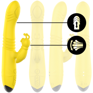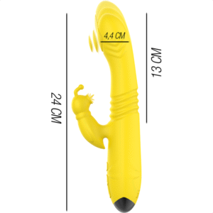INTENSE – VIBRADOR MULTIFUNO TOKY PARA CIMA E PARA BAIXO COM ESTIMULADOR CLITÓRICO AMARELO
