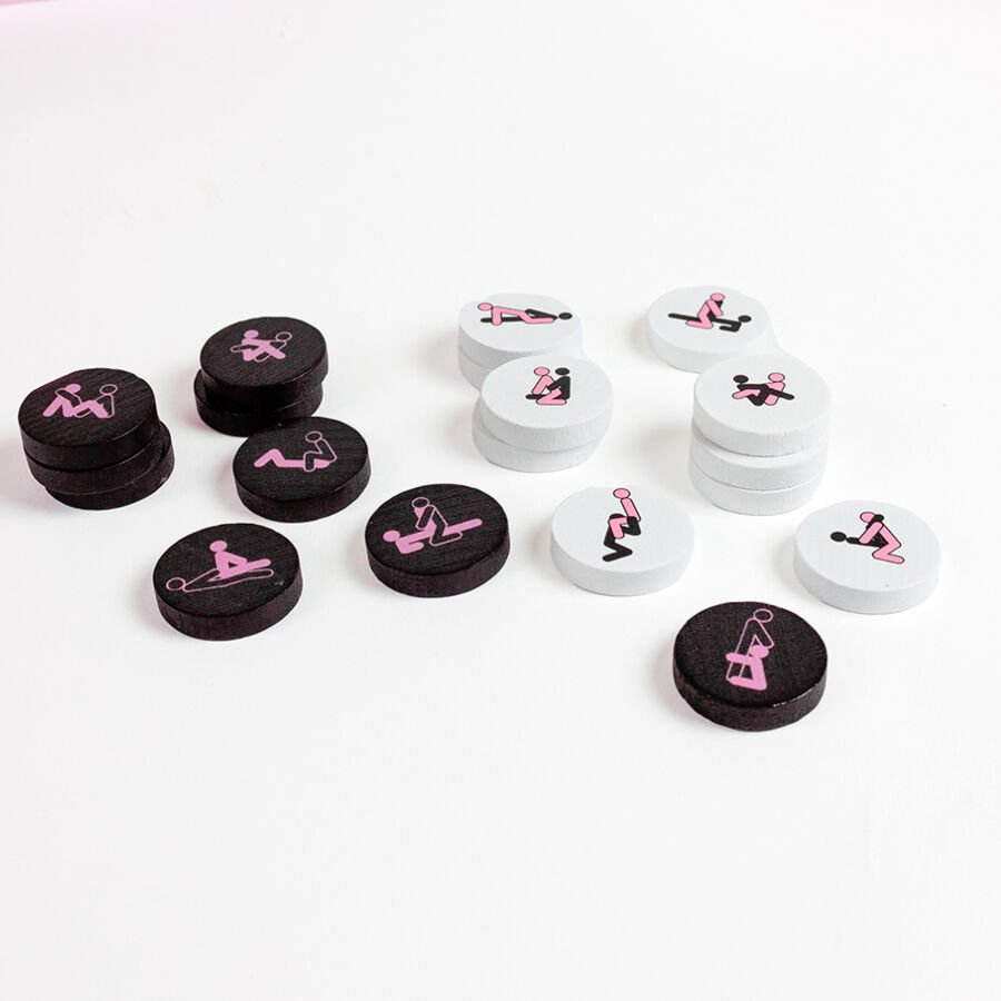 - 42 peças (21 brancas e 21 pretas), cada uma com uma posição diferente do Kama Sutra.